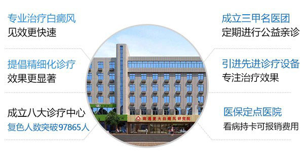 南通复大白癜风研究院作为江苏省白癜风专业医院,以专研白癜风,精于治白斑为宗旨,同时与国内数十家白癜风研究诊疗机构加强合作,不断强化科研、突破现有技术。点击即刻获得医院地址