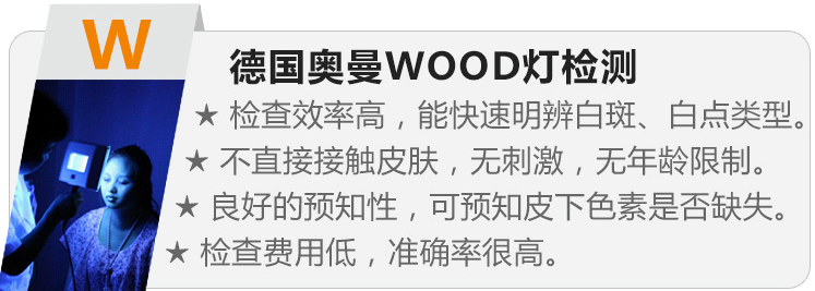 光靠肉眼判断白斑是哪种疾病,缺乏科学依据,必须要通过医疗设备检测,确诊才能治疗,临床中有很多的检测设备都能确诊白癜风,但是其中要属德国奥曼Wood灯检测仪,较为方便和实惠,白癜风在Wood灯荧光下,皮损部位白斑为纯白色,与周围正常皮肤对比鲜明,并可与其他白斑疾病相鉴别。