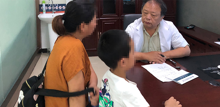 秦立模主任耐心向患者询问病情,为患者寻找病因、分析病情、制定一系列诊疗方案,并细心叮嘱患者日常生活中的注意事项,亲切引导患者积极面对白斑,给患者树立信心。
